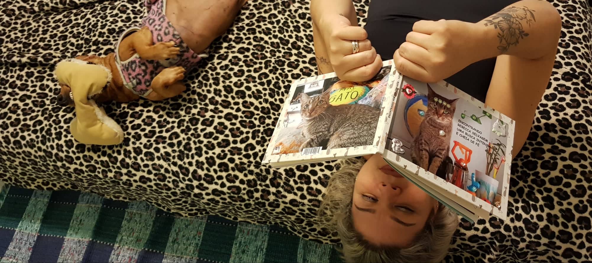 Elaine Abrahão, do RIO, uma fã confessa da Rebecca Selvagem (e gateira de coração e alma), fez selfie com o fotolivro sobre a saga da gatinha que se perdeu em SP, mas foi encontrada graças a inúmeras estratégias de resgate (algumas inimagináveis). Em metade do livro a história é contada pela própria Rebecca, sob a perspectiva dela. E na outra metade eu conto o que fiz durante duros 37 dias de busca "intensa".